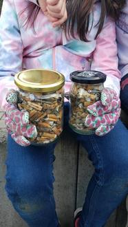 Insgesamt haben wir 485 Zigarettenstummel gefunden. Da jeder Zigarettenstummel, der in der Umwelt verrottet, ca. 50 L Wasser verschmutzt, haben wir also 24.250L Wasser vor der Verschmutzung bewahrt. Mit dieser Wassermenge kann man einen großen Pool füllen. Außerdem verrotten Zigarettenstummel erst nach 10 bis 15 Jahren in der Umwelt.