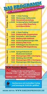 Am Sonntag den 02.06.2024 sorgen wir ab 10:00 Uhr für gute Stimmung auf dem Frühschoppen des diesjährigen Rheinspringens, welches im Rahmen Floßhafenfest im Wormser Rheinhafen stattfindet.