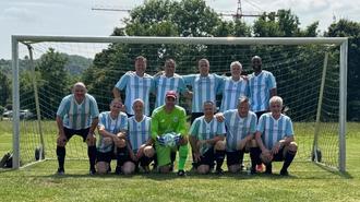 Unsere Ü50-Oldies erreichten bei der Südwestmeisterschaft in Merxheim den 5. Platz. Bereits die Anreise war durch die vielen Umleitungen eine große Herausforderung. Als alle Spieler dann endlich angekommen waren mussten wir bei tropischen Temperaturen gegen den starken Gastgeber, die SG Merxheim/M. antreten. Von Beginn an setze uns der spätere Turniersieger unter Druck und nur unserem starken Torwart Knut Herbert war es zu verdanken, dass mit 0:0 die Seiten gewechselt wurden. In der 2. Halbzeit kamen wir besser ins Spiel und hatten auch 2 sehr gute Möglichkeiten zur Führung. Leider mussten wir dann doch in der letzten Spielminute einen unglücklichen Treffer zum 0:1 hinnehmen. Im 2. Spiel gegen die SG Leiselheim starteten wir richtig gut, nutzen allerdings unsere Torchancen nicht. Kurz vor der Pause ging Leiselheim dann nach einer Standartsituation in Führung. Sascha Hildmann glich in der 2. Hälfte aus und es entwickelte sich ein ausgeglichenes Spiel. Unglücklicherweise kassierten wir erneut kurz vor dem Abpfiff einen Gegentreffer zum 1:2. Im letzten Match mobilisierten wir nochmal alle Kräfte und besiegten die SG Ludwigswinkel/S. durch ein Tor von Sven Hammermeister mit 1:0. Da in unserer Gruppe die SG Neuburg nicht antrat hatten wir lediglich 3 Spiele; wobei die Spielzeit auf 2 x 12 Minuten aufgestockt wurde. Mit etwas mehr Matchglück wäre bei dem Turnier ein besseres Abschneiden möglich gewesen. Nächste Saison greifen wir wieder an!