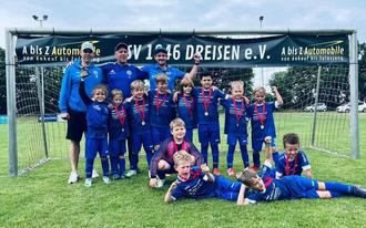 Unsere G-Jugend konnte beim Gasbock-Cup in Dreisen ungeschlagen den 1. Platz erringen. Im ersten Spiel besiegte unser Team die Gastgeber des SSV Dreisen I in einem tollen Spiel mit 2:1. Auch die weiteren Begegnungen dominierte unsere Kids und setzen sich gegen die Mannschaften des TV Kindenheim (7:0), TSG Weinheim (2:1), VfR Grünstadt (4:0) und die SSV Dreisen II (7:0) durch. Unsere Team begeisterte durch tollen Fußball und alle 12 Kinder hatten ihren Anteil an dem grandiosen Erfolg. Als Belohnung bekamen alle Kids Medaillen überreicht und als Highlight gab es noch den „Gasbock-Pokal“. Vielen Dank an den SSV Dreisen für die hervorragende Organisation.