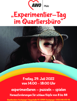 Am Freitag, den 29. Juli 2022 von 14:00 - 18:00 Uhr steht das Quartiersbüro ganz unter dem Motto „Experimentieren, puzzeln und spielen“.