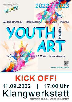 Die Veranstaltung am 11. September ist der START zur Youth Art Projekt-Reihe, verteilt sich dann organisiert übers Jahr und endet im November 2023 in einer großen Youth Art Abschlussveranstaltung im Rahmen unserer Kulturtage in Enkenbach-Alsenborn!