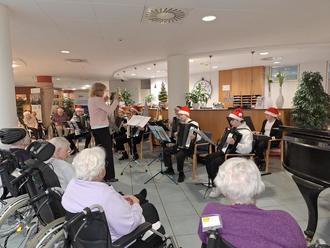 Mit ihren Akkordeons und am Flügel brachten sie eine wunderbare festliche Stimmung in unser Foyer. Besonders bewegend war, dass die Bewohnerinnen und Bewohner zum Mitsingen eingeladen wurden. Diese Gelegenheit nutzten sie mit Freude und trugen so auch zu der tollen Atmosphäre bei. Einen besonderen Dank gilt Frau Brödel, die mit viel Engagement die Leitung des Orchesters übernommen hat. Sie versteht es immer wieder, die Darbietungen unübertrefflich zu gestalten und zeigt sich stets bereit, uns zu besuchen. Die jungen Künstler zeigten nicht nur ihr musikalisches Können, sondern auch, wie viel Herzblut sie in ihre Musik legen. Das Konzert wurde mit viel Applaus und Dankbarkeit seitens der Anwesenden und Frau Relle honoriert. Es war ein gelungener Nachmittag, der allen noch lange in schöner Erinnerung bleiben wird.