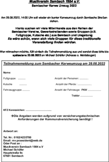Bei der Organisation und Ausrichtung hat sich der Musikverein Sembach Unterstützung bei den Kegelfreunden und den „Ghost Dartern“ gesucht und die Ortsgemeinde unterstützt ebenfalls das XXL-Kerwe-Comeback. So konnte das Programm der drei Festtage ausgeweitet werden und es wird für ein neues Erlebnis auf der Sembacher Kerwe gesorgt.