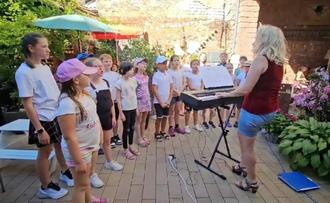 Zur letzten Singstunde vor den Sommerferien trafen sich die Mitglieder des Kinderchors im „Goldcafe“ in Enkenbach um in die Sommerpause zu starten. Bevor jedes Chormitglied als Anerkennung für die geleistete Arbeit im Chor in zurückliegender Zeit ein schmackhaftes Eis bekam, unterhielten die Kinder die anwesenden Gäste überraschend, unter der Leitung ihrer Dirigentin Frau Ekaterina Kronibus, mit einigen schwungvollen Liedern. Anhaltender Applaus und der Ruf nach einer Zugabe waren der Lohn für die gelungene Gesangs Darbietung. So schwungvoll soll es nach den Ferien wieder weiter gehen.