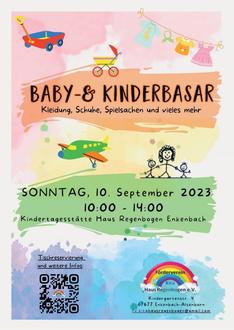 Dann ist unser Baby- und Kinderbasar am Sonntag, den 10. September 2023 genau ds Richtige für Euch! Von 10 bis 14 Uhr habt Ihr die Möglichkeit, auf dem Gelände der Kita Haus Regenbogen in Enkenbach Baby- und Kinderkleidung, Schuhe, Spielsachen uvm. zu verkaufen oder euch in gemütlicher Atmosphäre die besten Schnäppchen zu sichern. Für das leibliche Wohl wird bestens