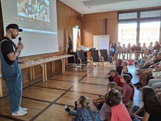 Am Ende der Veranstaltung sangen die Kinder, auf der Gitarre begleitet von Alex Breidt, das Lied noch einmal live, was großen Beifall erntete.