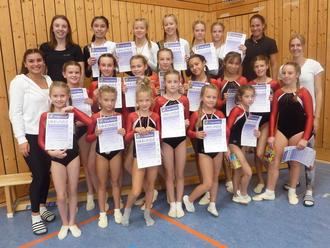 Nach 2 Jahren Pause fanden endlich wieder die Gau-Mannschaftsmeisterschaften im Gerätturnen weiblich statt. Alle 3 Mannschaften schafften in ihren jeweiligen Altersklassen den Sprung aufs Treppchen und konnten sich somit für die Pfalzmeisterschaften im November in Hassloch qualifizieren. Auf dem 1. Platz und somit Gau-Mannschaftsmeisterinnen wurden im Jahrgang 2009 und jünger mit 166,10 Punkten Emelie Bernhard, Nelli Mands, Emma Schläfer, Claire Vollmer und Lilly Hinkel. Herzlichen Glückwunsch! Im Jahrgang 2007 und jünger belegten Larissa und Sara Metzger, Elena Spies, Anne und Nina Blauth mit 168,60 P. einen tollen 2.Platz. Auch unsere Kleinsten im Jahrgang 2013 und jünger kamen mit Zoe Stumber, Greta Woll Amelia Tavares da Silva, Alisa Schendel und Emma Wagner) mit 138,60 Punkten auf einen tollen 2. Platz.
