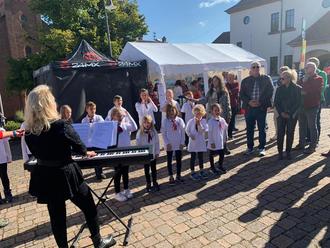 Außer „probieren, kaufen und schlemmen“ bekamen die zahlreichen Besucher des „Nordpfälzer Bauernmarktes“ am 24.09.2023 in Schneckenhausen auch etwas auf die „Ohren“. Mit vielen Liedern, auch zum Mitsingen gut geeignet, unterhielt der Kinderchor des Gesangvereins Enkenbach unter der Leitung von Frau Ekaterina Kronibus die Besucher des Bauernmarktes. Ein gelungener Auftritt der jungen Sängerinnen und Sänger, der mit viel Applaus belohnt wurde.