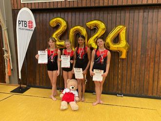 Das Team der Landesbestenkämpfe mit Emely Becker, Lina Wagner, Elena Ocwirk, Anika Falinski und Sirat Aulakh trat in der Altersklasse Jahrgang 2011 und jünger (AK 403) an und belegte den 8. Platz. Kurzfristig musste das Team aufgrund eines Ausfalls mit nur vier Turnerinnen antreten, was im Vorfeld für einige Aufregung sorgte da das Team die Übungen der fehlenden Turnerin übernehmen musste. Doch die Mädchen meisterten diese unerwartete Herausforderung mit Mut und Entschlossenheit.