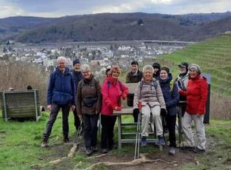AHRWEILER / UNKEL. Elf Wanderfreunde der OG Ahrweiler trafen sich am Sonntag, 26. Februar, am Ahrweiler Bahnhof, um in Fahrgemeinschaften auf die andere Rheinseite nach Unkel zu fahren. Vom Parkplatz in Unkel gingen die Wanderer auf einem kurzen Rundgang durch die mittelalterlich anmutenden Gassen der Stadt: vorbei an der Pfarrkirche St. Pantaleon führte der Weg hinunter zur Rheinpromenade und aus der Stadt hinaus in den Ortsteil Scheuren. Von der eindrucksvollen, spätgotischen Kapelle, vorbei an alten Fachwerkhäusern wanderte die Gruppe durch den Ort und auf schmalen Waldwegen, beständig aufwärts, zur Hochfläche von Höhenunkel und Gut Haanhof. Man erreichte einen einsam gelegenen Ehrenfriedhof und gelangte, dem Breitbach folgend, zur Eischeid. Am Weg waren, bei genauerem Hinschauen, frühere Blei- und Kupferabbaustätten zu entdecken. Am höchsten Punkt der Wanderung wurde ein Rastplatz mit schönen Blick auf Bruchhausen und auf den Rhein erreicht.