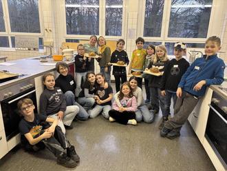 Kürzlich trafen sich die diesjährigen Kommunionkinder in mehreren Gruppen in der Küche der Realschule Calvarienberg um miteinander Brot zu backen, zu essen und Gemeinschaft zu erleben – als Teil der Vorbereitung auf die Erstkommunion im April. Am Ende gab es leckeres Brot und viele fröhliche Gesichter.