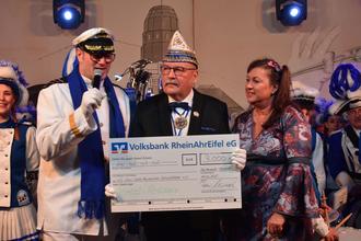 BAD NEUENAHR. Eine große Überraschung erlebte die KG Blau-Weiss Neuenahrer Schinnebröder e. V. auf ihrer Prunksitzung am Freitag, 21. Febraur, als die Ahrtal-Residenz zwei großzügige Spenden an die Karnevalsgesellschaft und den Damenelferrat auf der Bühne überreichte. Seit vielen Jahren können die Schinnebröder auf die Unterstützung der Ahrtal-Residenz bauen und blicken auf eine enge und freundschaftliche Verbundenheit zurück.