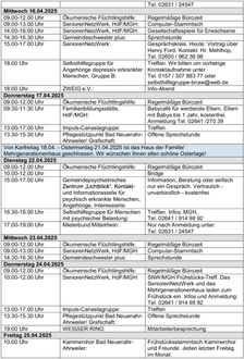 | 9-12 Uhr | Ökumenische Flüchtlingshilfe: | Regelmäßige Bürozeit |