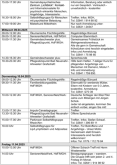 | 14.30-16.30 Uhr | Gemeindeschwester plus: | Sprechstunde |