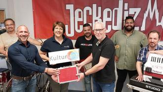 AHRWEILER. TW. Jeckediz und Kulturlant hatten im vergangenen Dezember zu einem Konzertabend nach Lantershofen eingeladen. Bei „Mir könne och anders“ spielte die Mundartband sozialkritische Kölner Lieder und begeisterte 250 Zuschauer im ausverkauften Winzerverein. Jetzt spendeten Jeckediz und Kulturlant den kompletten Erlös aus Ticketverkauf und Catering in Höhe von 3.400 Euro dem Hilfsprojekt „Botzedresse für Kinderherzen in Not.“ Jörg Groß (2.v.l) nahm den symbolischen Geldkoffer aus den Händen von Ulrike Schlösser und Dirk Schoenmackers entgegen.