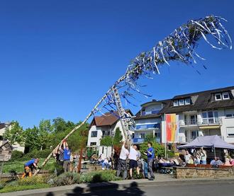 BACHEM. Der Junggesellenverein Bachem 1800 e. V. stellte, wie mittlerweile nach der Flut 2021 zur Tradition geworden, den Maibaum an der Klön Ecke in Bachem auf. Der Vorsitzende John Rübenach organisierte mit seiner Mannschaft rund um den Dorfplatz in Bachem ein gemütliches Beisammensein für die Besucher. Für Speis und Trank war bestens gesorgt. Auch der Männerchor Bachem begrüßte mit einigen Liedern den Mai und somit das Wiedererwachen der Natur. Erstmalig in diesem Jahr wurde auf den weißen Bändern am Maibaum mit dem Benennen ihrer Namen den Freundinnen der Junggesellen von Bachem eine besondere Ehre erteilt. Die Bachemer Bevölkerung, insbesondere auch Ortsvorsteher Ulrich Stieber, freut sich sehr, dass zum Start des Monats Mai über einen geschmückten Baum in Bachem der Frühling gemütlich willkommen geheißen wurde.