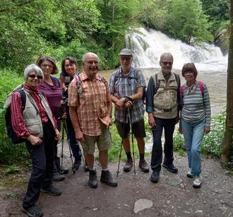 Am Wasserfall unterhalb der Burg angekommen, folgte die wanderbegeisterte Truppe dem geschlängelten Weg weiter entlang des Baches und konnte bei heiter bis wolkigem Wetter die Natur in vollen Zügen genießen.