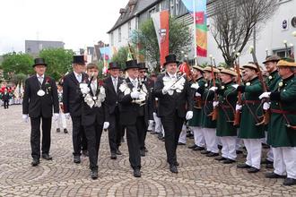 Eine ganze Woche lang feierten die Ahrweiler Schützen. An Fronleichnam hatten die Feierlichkeiten ihren Höhepunkt erreicht. Hier schreiten die Schützenkönige der drei Schützengesellschaften, Justin Büch, Jürgen Schmitz und Jakob Burow (v.r.), die Front ab.