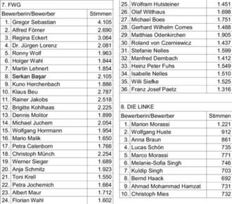 Der Wahlausschuss hat in seiner Sitzung am 13.06.2024 das Ergebnis der Wahl zum Stadtrat wie folgt festgestellt: