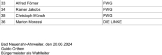 zum Stadtrat Bad Neuenahr-Ahrweiler am 9. Juni 2024