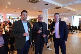 Nach zehn Jahren darf es ein Glas Sekt auf das Erarbeitete sein: (v.l.) Jan Ritter, Bürgermeister Guido Orthen und Christian Senk.