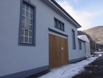 Das wiederaufgebaute Alte Wasserwerk, im Hintergrund die neue Leichtbauhalle.