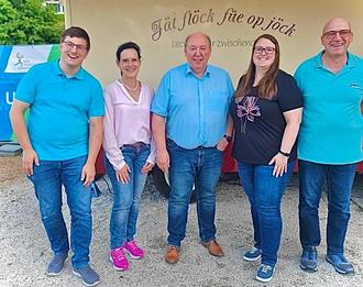 Der neue Vorstand (v.l.): Mathias Wutke, Birgit Sommer-Laux, Wilfried Sommer, Jennifer Jakobs, Dieter Jakobs. Auf dem Bild fehlt Leo Bitzen