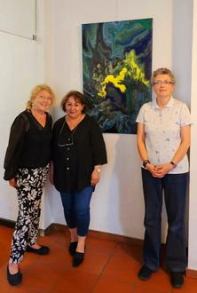 Gisela Franz (Leitung Stadtbibliothek), Künstlerin Sarah Wilhelms und Eva-Maria Kreuter (Präsidentin Are-Gilde)(v.r.)