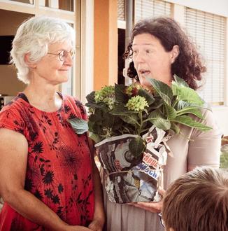 Ulla Schüren erhält Blume und Urkunde