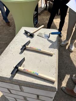 Mit Maurerhammer und Traufel haben die Verantwortlichen den Grundstein gelegt.
