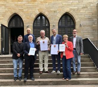 Die Delegation aus Bad Neuenahr-Ahrweiler und Sinzig (v.l.): Oliver Göbel (Stadt Sinzig), Hans-Werner Adams (Beigeordneter Stadt Sinzig), Josef Erhardt (Heimatarchiv Bad Bodendorf), Anton Simons (Denkmalverein Sinzig), Wolfgang Horrmann (Beigeordneter Stadt Bad Neuenahr-Ahrweiler), Heike Wernz-Kaiser (Stadt Bad Neuenahr-Ahrweiler) und Elmar Knieps (Denkmalverein Sinzig).