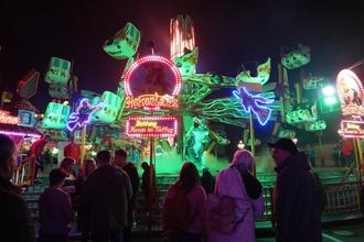Am meisten los war aber an den großen Fahrgeschäften. Beim „Hexentanz“ ging es für die Mitfahrer in Gondeln, die wie fliegende Hexen in ständig anderer Geschwindigkeit um eine 16 Meter hohe Flammensäule tanzten. Immer wieder über Kopf schwang sich ein paar Meter weiter die Riesenschaukel Intoxx, ehe sie in 22 Metern Höhe stand und die Gäste nach unten hingen. Daneben wirkte die gute alte Berg- und Talbahn „Beach Party“ wie ein Museumsstück, ihren Reiz hat die Bahn aber nie verloren. Für Adrenalinschübe sorgt zudem das Hoch-Rundfahrgeschäft „Mr. Gravity“. In 20 Metern Höhe ging es bei Geschwindigkeiten bis zu 100 Stundenkilometern rund. Man bekam das Gefühl, die Erdanziehungskraft zu verlieren.
