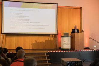 Um 10 Uhr begann der Aktionstag mit der offiziellen Begrüßung durch Bürgermeister Guido Orthen, der die hohe Bedeutung der Vorsorge sowohl aus öffentlicher Hand sowie auch in privater Verantwortung betonte. Direkt im Anschluss begannen die Fachvorträge, die sich um Themen wie die private Starkregenvorsorge, die neue Sturzflutgefahrenkarte, die Außengebietsentwässerung oder auch die Wiederherstellung der Ahr drehten. Insgesamt fanden im Laufe des Tages zehn Vorträge statt; die Moderation übernahm Alfred Bach vom Planungsstab Aufbau der Stadtverwaltung Bad Neuenahr-Ahrweiler.