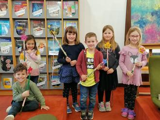 Lebendig gestaltet mit einem Kamishibai-Bildtheater, bei dem passend zur Erzählung jeweils mehrere großformatige Bildkarten angeschaut werden können, verging die Stunde wie im „Hexenflug“. Die ehrenamtliche Mitarbeiterin Petra Schmidt verstand es meisterhaft, den Kindern die lustige Geschichte nahezubringen. Voller Eifer machten sie sich im Anschluss daran, eigene Zauberstäbe zu basteln um sie dann den staunenden Eltern zu zeigen.