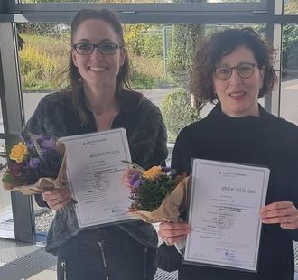 AHRWEILER. Die Klinikleitung der Dr. von Ehrenwall´schen Klinik ist stolz darauf, dass trotz widriger Umstände vier weitere Mitarbeiterinnen im Pflegedienst ihre Weiterbildungen erfolgreich abschließen konnten. Nina Coltro und Lysann Walbröl besuchten die Weiterbildung zur Leitung im mittleren Management in der Akademie für Pflege, Gesundheit und Soziales der DRK-Schwesternschaft „Bonn“ e.V..