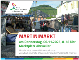 Bad Neuenahr-Ahrweiler. Am Donnerstag, 6. November von 8 bis 18 Uhr, lädt der Martinimarkt auf dem Marktplatz in Ahrweiler alle Bürgerinnen und Bürger wieder zum Stöbern, Shoppen und Genießen ein. Unter anderem werden auf dem Markt Bekleidung, Schürzen, Messer, Anlasskarten, Küchentextilien und Strickwaren angeboten.