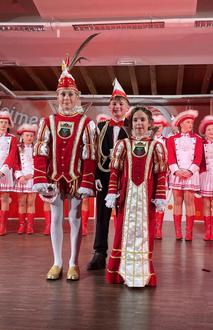 HEIMERSHEIM. BST. Erst die Kleinen, dann die Großen: Diese bewährte Reihenfolge wurde auch dieses Mal in der Landskroner Festhalle am vergangenen Samstag, 8. November, bei der KG Närrische Landskroner eingehalten. In der Kinderproklamationssitzung, souverän geleitet vom Sitzungspräsidenten Lasse Magnus Held, ging nach einigen gelungenen tänzerischen Darbietungen das Zepter von Kinderprinzessin Finja I. an das neue Kinderprinzenpaar Lennie I. (Holzem) und Louisa I. (Hanisch) über. Ihnen zur Seite steht Adju Mats Gotter (12). Prinz (12) und Prinzessin (10) sind schon länger mit dem Karnevalsvirus infiziert, teils durch akute "familiäre Vorbelastung". So ist der große scheidende Prinz Michael I. zugleich der Onkel des Kinderprinzen und gehörte natürlich zu den ersten Gratulanten. In ihrer Regierungserklärung wurden dann auch Groß und Klein aus der Familie und KG gleichermaßen einbezogen, um den beiden eine unvergessliche Session zu bereiten u.a. mit Fußballturnieren und dazugehörender Cheerleadergruppe, einem Ausflug, einem Kinderkarnevalsfest, einem selbst gebauten Karnevalswagen und einer eigener Hymne.