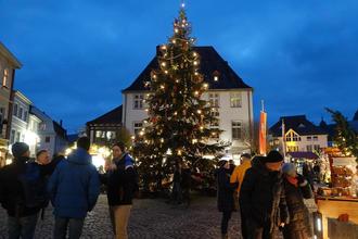 Wahrzeichen des Weihnachtsmarktes ist der große Weihnachtsbaum vor dem Hotel zum Stern.