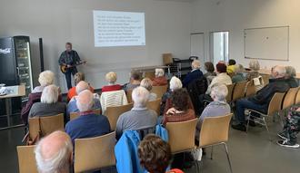 Jürgen Schick machte aus den Anwesenden wieder aktive Sängerinnen und Sänger.
