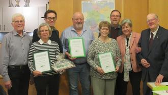 Die Vorsitzende ehrte Irmgard Fleißig und Swetlana Saftschuk für 25 Jahre aktive Mitgliedschaft, Uschi Kündgen für 40 Jahre überwiegend aktive Mitgliedschaft sowie Erich Stadtfeld für 25 Jahre und Bernhard Stahl für 40 Jahre Vorstandstätigkeit. Die gleichen Jubiläen ehrte zusätzlich der Vorsitzende des Kreis-Chorverbandes, Günter Nerger.