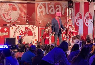 Pünktlich um 14.11 Uhr zog der Kinderelferrat gemeinsam mit der kleinen Tanzreihe samt Tanzpaar auf die Bühne. Mit einer schwungvollen tänzerischen Darbietung begrüßten sie das Kinderprinzenpaar Louisa I. (Hanisch) und Lennie I. (Holzem) mit Adjutant Mats Gotter sowie den amtierenden Prinzen Florian I. (Welter) mit Adjutant Rainer Groß.