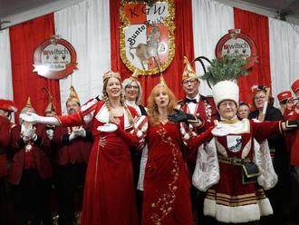 Nun hat auch die KG Bunte Kuh in Walporzheim ihre Tollitäten enthüllt - und was für welche. Ein weibliches Dreigestirn kam zum Vorschein: Prinzessin Alexandra I. (Röhn), Bäuerin Erika (Wolf) und Jungfrau Sarh (Knickmeier) übernahmen die Macht. An ihrer Seite stehen Hofdame Astrid Knieps und Adjutant Michael Knickmeier.