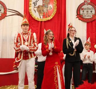 Das Prinzenpaar Sophie I. (Jonas) und Leon I. (Rosenthal) mit Adjutantin Romy Jansen