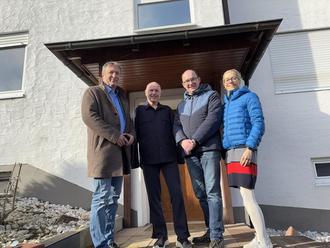 Jörn Kampmann (2. von rechts), Schatzmeister der Lebenshilfe, gemeinsam mit (von rechts) Ute Voß, und Ulrich van Bebber aus dem Vorstand sowie Geschäftsführer Frank Scheider beim Ortstermin am inklusiven Wohnprojekt in Bad Neuenahr-Ahrweiler. Kampmann begrüßt ausdrücklich, dass die Lebenshilfe auch in seiner Heimatstadt Wohnraum für Menschen mit Beeinträchtigungen schafft.