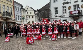 AHRWEILER. Von den kleinen, mittleren bis zu den großen Funken, der Senat, Vorstand, die Stadtgarde und natürlich an der Spitze das Prinzenpaar Maria I. und Kai I. mit ihrem Adju Karl-Heinz – alle hatten sich am vergangenen Wochenende versammelt, um Dankeschön zu sagen. Danke an die Ahrweiler Bürgerinnen und Bürger, aber vor allem Danke an die Ahrweiler Geschäftswelt, die wieder die AKG finanziell oder durch Sachspenden in dieser Session unterstützt haben. Man tanzte sich über den Markplatz bis zum Niedertor und zum Ahrtor. Überall dort, wo ein Stopp angesagt war, fand Sitzungspräsidentin Carolin Groß wertschätzende Worte für die großzügigen Spenden bei den umliegenden Geschäften, Hotels und Restaurants. Denn in den vergangenen Tagen waren die sogenannten „Köttgruppen“ unterwegs und baten um Spenden zur Unterstützung des Rosenmontagsumzuges und für die Jugendarbeit.