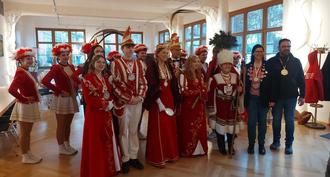 Zur Abordnung der KG gehörten außerdem der Vorsitzende Hardy Mies, Sitzungspräsident Stefan Jacobs sowie mehrere Vorstands-, Elferrats- und Senatsmitglieder. Begleitet wurden sie von den Mittleren und Großen Funken. Die Veranstaltung fand im Rahmen der Prinzenvorstellung am Freitag, den 13. Februar, statt.