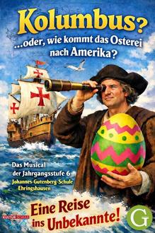 „Kolumbus oder wie kommt das Osterei nach Amerika?“ heißt das neue Musical der Johannes-Gutenberg-Schule und besteht aus Moderation, szenischem Spiel, Tanz und Musik.
