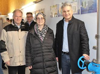 Um die Wasserversorgung der Aßlarer Stadtteile Oberlemp und Bermoll sowie dem Ehringshäuser Ortsteil Niederlemp sicher zu stellen, wurde eine Verbindungsleitung vom Hochbehälter in Bechlingen zum Tiefbrunnen Oberlemp verlegt. Am Dienstag wurde die rund 3100 Meter lange Rohrleitung durch Bürgermeister Christian Schwarz, seinen Amtskollegen Jürgen Mock und Stadtverordnetenvorsteherin Katharina Schäfer offiziell in Dienst gestellt. Schwarz hieß dazu zahlreiche Vertreter aus Politik und Verwaltung beider Kommunen sowie der beteiligten Firmen willkommen. "Zur Schonung des Waldes wurden gut 300 Meter unterirdisch im Bohrspülverfahren durchgeführt und für die restliche Trasse ausschließlich Feld- und Waldwege genutzt", erläuterte Schwarz. Das Beste vorweg: Die geplanten Kosten in Höhe von 830000 Euro konnten deutlich unterschritten werden! Mit Herstellungskosten in Höhe von 716607,71 Euro netto waren es am Ende 113392,29 Euro weniger Kosten. Ehringshausen übernahm einen 38,86 -prozentigen Anteil in Höhe von 250712,23 Euro netto. Außerdem gab es eine Förderung im Rahmen des Konjunkturpakets der Bundesregierung zur Durchführung des Wassersicherstellungsgesetzes in Höhe von 71510,26 Euro netto. Vom 25. April bis zum 4. November 2022 wurden die Bauarbeiten durchgeführt, seit dem 1. Januar fließt das Wasser wie geplant und am 15. Februar erfolgte die Abnahme und am Dienstag drehten Schwarz, Mock und Schäfer symbolisch den "Wasserhahn" auf. Die Bauarbeiten der Firma Hinterlang aus Bad Endbach wurden vom Grünberger Ingenieurbüro Müller überwacht und die Stadtwerke Aßlar als Bauherren sind sehr zufrieden.