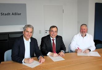 Die Firma GlasfaserPlus wird Anfang 2025 in Aßlar Glasfaseranschlüsse bis ins Haus bauen. Bürgermeister Christian Schwarz und 1. Stadtrat Dr. Stefan Zabeschek haben am Montag zusammen mit Oliver Knöll, Regiomanager bei Telekom eine gemeinsame Erklärung unterzeichnet. In diesem Rahmen werden rund 6.700 Haushalte im Stadtgebiet angeschlossen. Durch den Ausbau werden Geschwindigkeiten bis 1 Gigabit pro Sekunde (Gbit/s) möglich und der Hausanschluss ist bei Tarifbuchung kostenfrei. GlasfaserPlus ist ein Gemeinschaftsunternehmen der Deutschen Telekom und IFM Investors, einem australischen Fondsverwalter, der im Eigentum von Pensionskassen steht und global Pensionsgelder in Infrastrukturunternehmen anlegt. Ein Glasfaseranschluss überträgt stabil und zuverlässig Daten in Gigabitgeschwindigkeit. Das neue Netz erlaubt eine Downloadgeschwindigkeit von 1 Gbit/s. Damit können alle bekannten Anwendungen problemlos genutzt werden. In Zukunft werden sogar noch höhere Geschwindigkeiten möglich sein, denn die Bandbreite auf einem Glasfaserkabel ist nahezu unbegrenzt. "Ich freue mich sehr, dass die politischen Gremien hier Weitsicht bewiesen haben und nach einem Abwägungsprozess einstimmig 'grünes Licht' für den Ausbau mit Glasfaser gegeben haben. Mit GlasfaserPlus wurde sich hier für einen leistungsstarken und kompetenten Partner entschieden. Für uns als Kommune ist die Glasfaser ein enormer Schritt ins Digitalzeitalter. Schon bald werden nicht nur Schulen und Gewerbebetriebe, sondern alle Bürgerinnen und Bürger Zugang zur Hochgeschwindigkeits-Datenautobahn haben. Über die Lahn-Dill-Breitband werden wir auch den Ausbau in den Lempgemeinden eigenverantwortlich vorantreiben, mit dem Ziel, dass bis spätestens 2030 jeder die Möglichkeit für einen Glasfaseranschluss hat", so Bürgermeister Christian Schwarz. "Wir sind mit dem Ziel angetreten, den ländlichen Raum in Deutschland mit schnellem und zuverlässigem Internet durch Glasfaseranschlüsse zu digitalisieren. Aßlar ist auf diesem Weg ein wichtiger Meilenstein", so Martin Kolb, Relationship Management bei GlasfaserPlus. "Die GlasfaserPlus knüpft ihre Ausbauzusage nicht an das Erreichen von Vermarktungsquoten", so Oliver Knöll. "Deshalb müssen alle Interessierten selbst aktiv werden und ihren Glasfaseranschluss buchen. Dies ist beispielsweise direkt online bei der Telekom, im T-Shop oder im Fachhandel möglich." GlasfaserPlus ist ein Netz der Vielfalt, wird es doch allen Telekommunikationsanbietern zur Verfügung gestellt. Bürger*innen haben damit die freie Wahl, bei welchem Unternehmen sie Internet, Telefon oder Fernsehen buchen möchten. Die GlasfaserPlus wird bis 2028 vier Millionen gigabitfähige Glasfaser-Anschlüsse vor allem im ländlichen Raum bauen. Für den Ausbau in Biebertal hat die Telekom bereits angekündigt, das Netz der GlasfaserPlus nutzen zu wollen. Während der Ausbauphase schließt die GlasfaserPlus schließt eine Immobilie der kostenfrei an, wenn Kundinnen oder Kunden einen Glasfaser-Tarif bei einem Telekommunikationsanbieter abschließen. Die GlasfaserPlus benötigt in diesem Fall lediglich eine Genehmigung, den Anschluss herstellen zu dürfen, weil die Arbeiten dafür auf Privatgrund geschehen. Die Beauftragung funktioniert folgendermaßen: Kunden/Kundinnen buchen bei einem Telekommunikationsanbieter einen Glasfaser-Tarif. Der wiederum nimmt Kontakt mit der GlasfaserPlus auf und kümmert sich um die Genehmigung und die Details. Bei einer Buchung nach der Ausbauphase werden in der Regel Kosten für den Hausanschluss erhoben, bei der Telekom betragen diese z.B. einmalig 799,95 Euro.